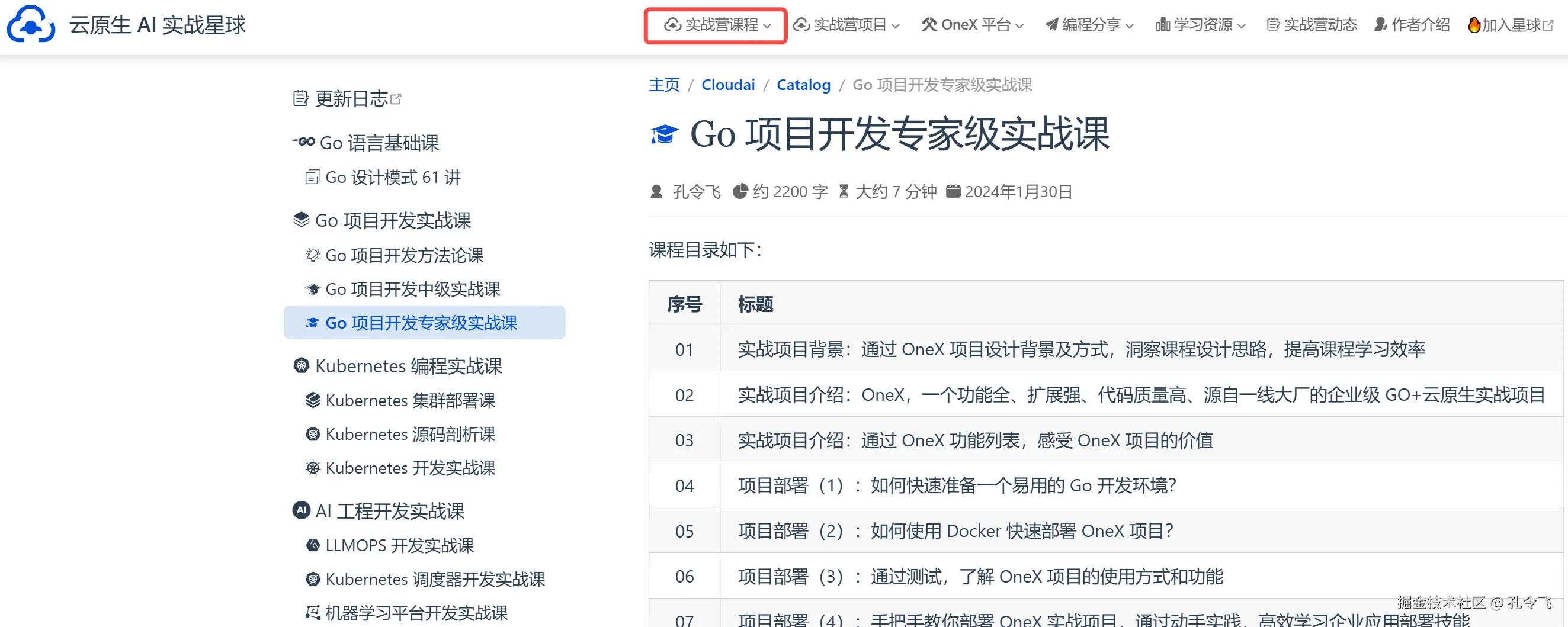 实战营的课程可以打开网站:konglingfei.com 查看。以下是课程截图: