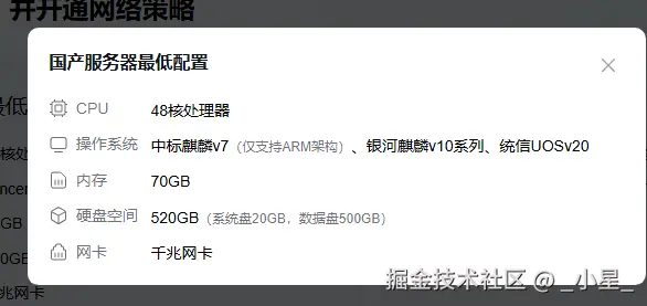 部署的第一步是准备一台满足最低要求的服务器。国产信创服务器的要求会比普通X86架构服务器更高一些,可以点击“国产服务器”进行查看。