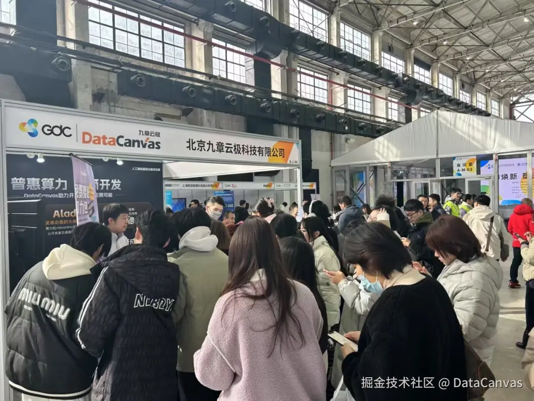 大会现场,九章云极DataCanvas公司展台成为大会焦点,深度展示了普惠算力多场景解决方案、Aladdin工具实战演示、以及“复刻DeepSeek Aha Moment”活动,吸引众多开发者驻足交流。开发者可深度体验低成本、高质量的算力资源,复刻模型性能从量变到质变的顿悟时刻,直观感受革命性大模型开发工具Aladdin 带来的开发效率飙升。
