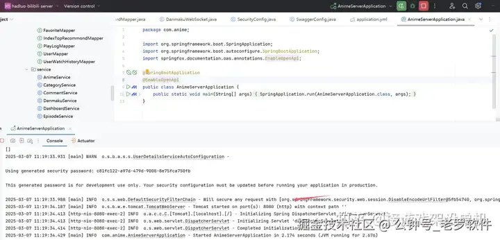 然后启动 main 启动类 AnimeServerApplication: