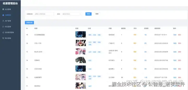 - 动漫分类管理