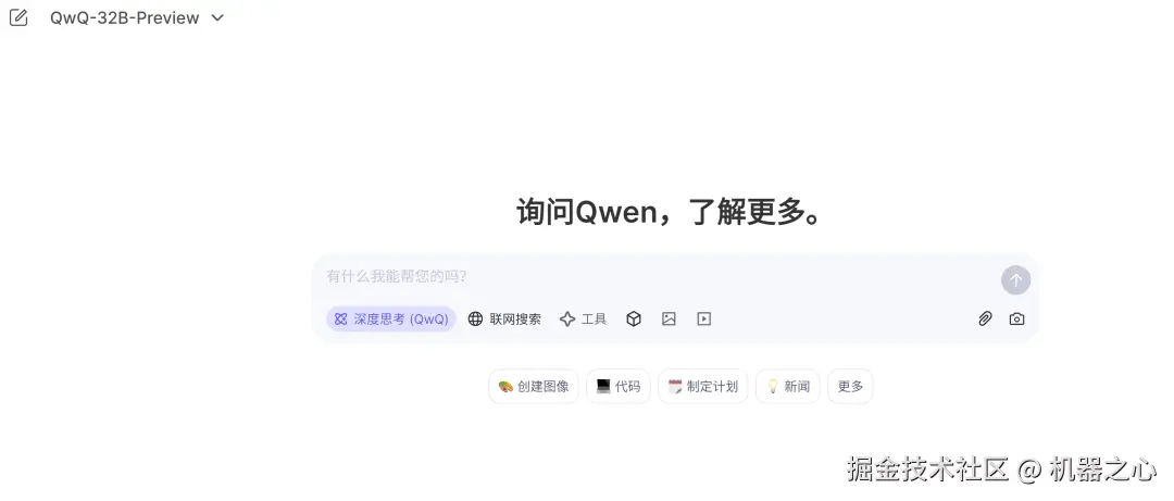 在 Qwen 的官方聊天界面(Qwen Chat),我们已经能看到 QwQ-32B 的预览版模型。感兴趣的读者可以前去测试。