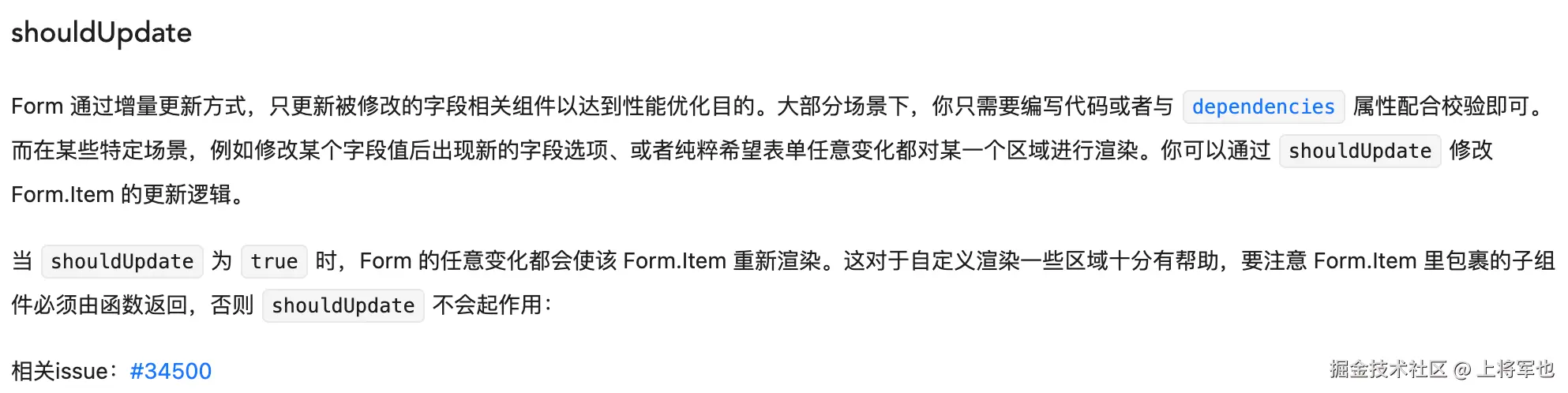 return <Form.Item shouldUpdate={(pre,current)=> pre!==current}>