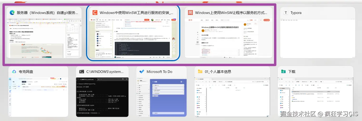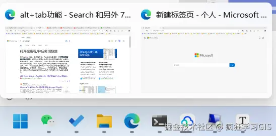 这里需要注意,如果我们开启了多个Edge程序(如下图所示,就是开了2个Edge程序),那么每一个Edge程序还是都会单独出现在Alt+Tab切换器中——上述操作仅针对1个Edge程序中的多个标签页有效果。