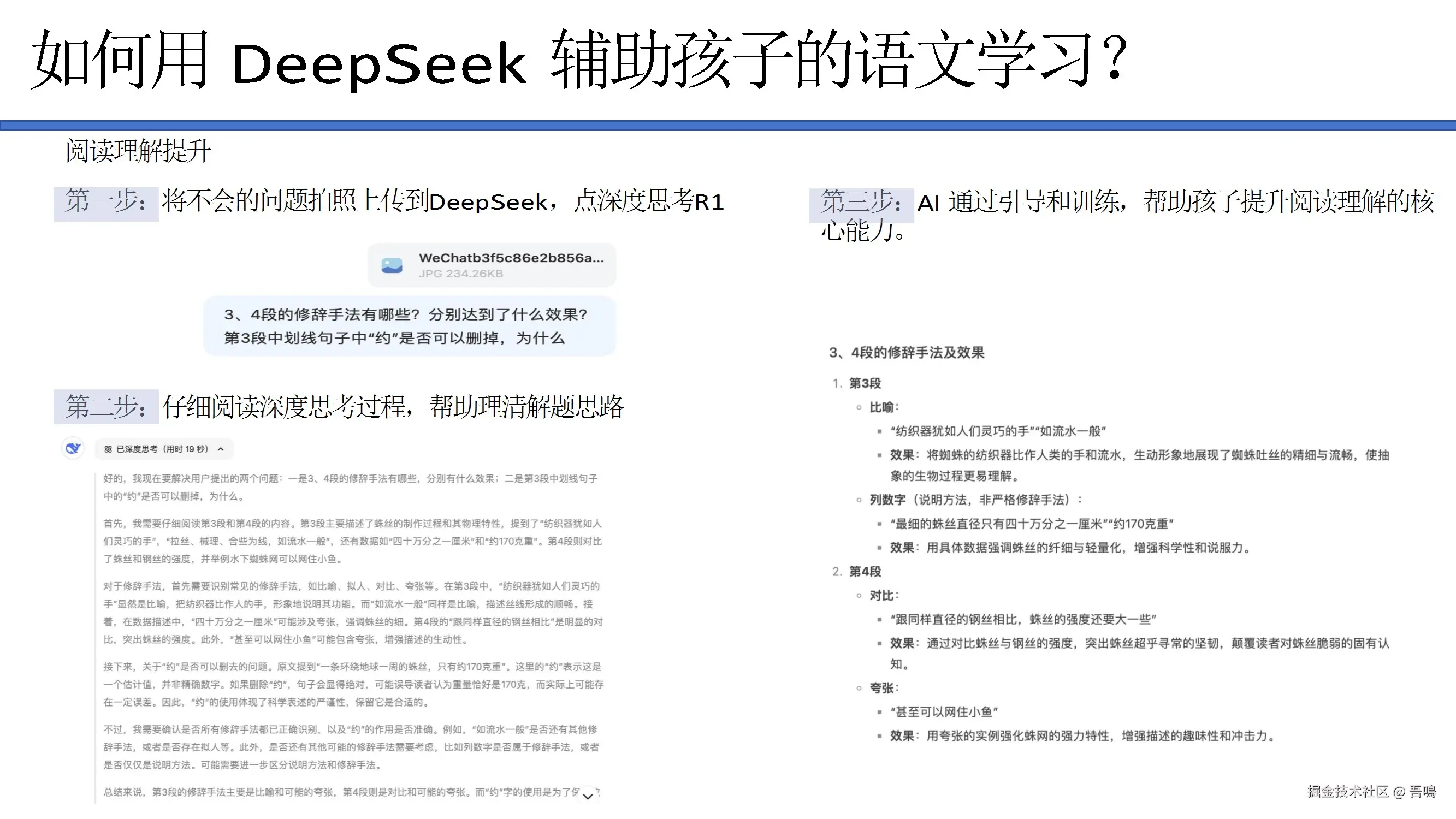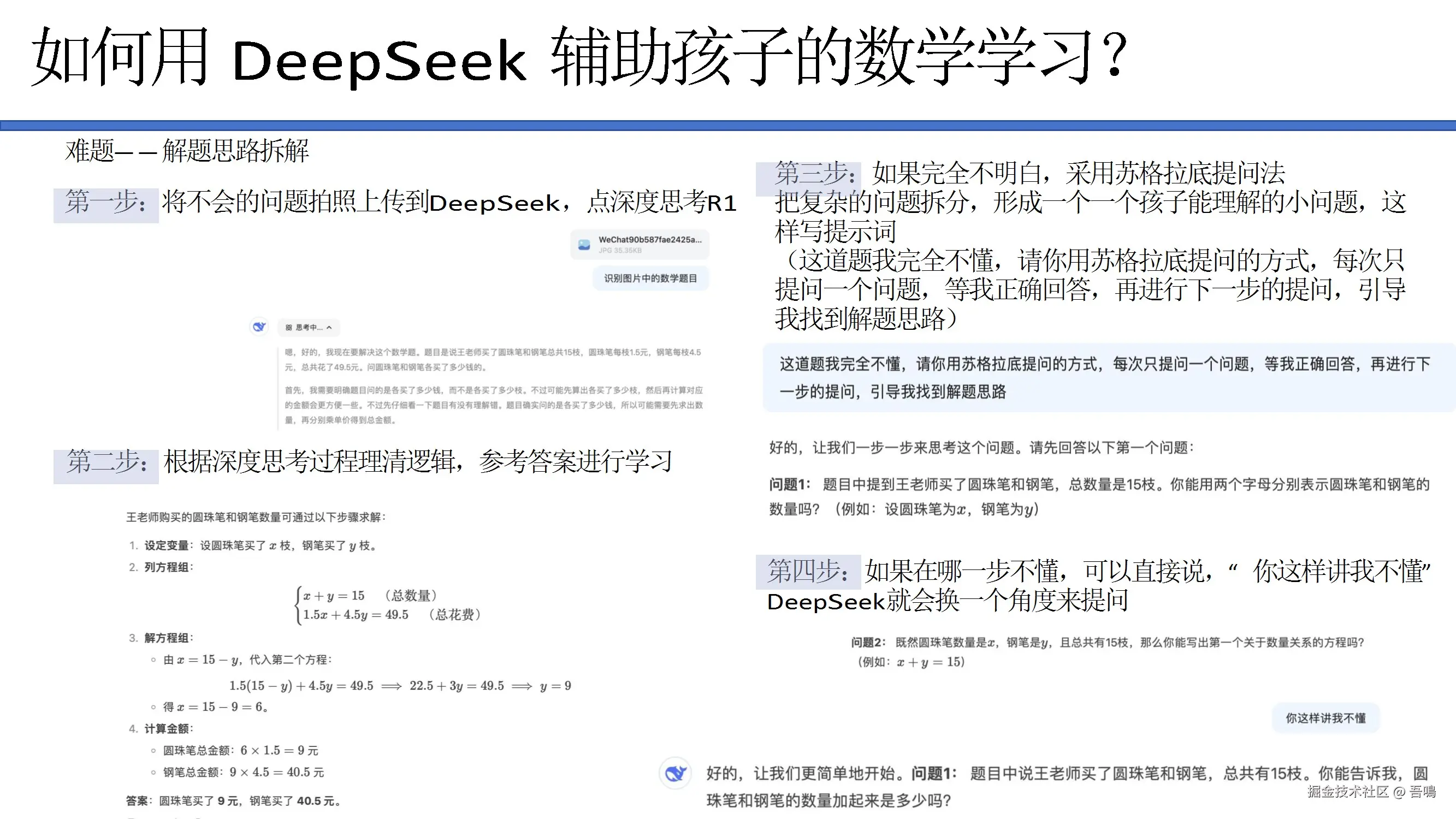 家长可以使用DeepSeek辅导孩子的数学作业、英语作业,帮助引导孩子管理情绪与沟通技巧,相当于请了一个住家的家教,家教的知识水平是个深不可测的高手。报告一共有91页PPT,文末有完整版下载地址。