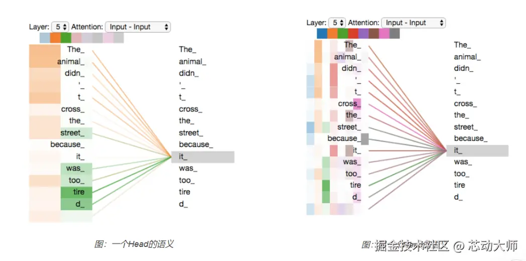 从上面两图的对比也能看出使用多个Head的好处——每个Head(在数据的驱动下)学习到不同的语义。