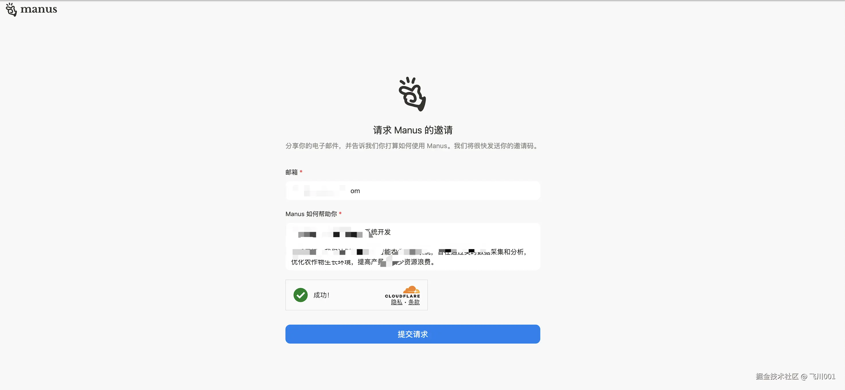 - 关注 Manus 官网(manus.im)的动态,提交申请表,有机会获得官方邀请。(可以使用deepseek帮忙生成申请文案)