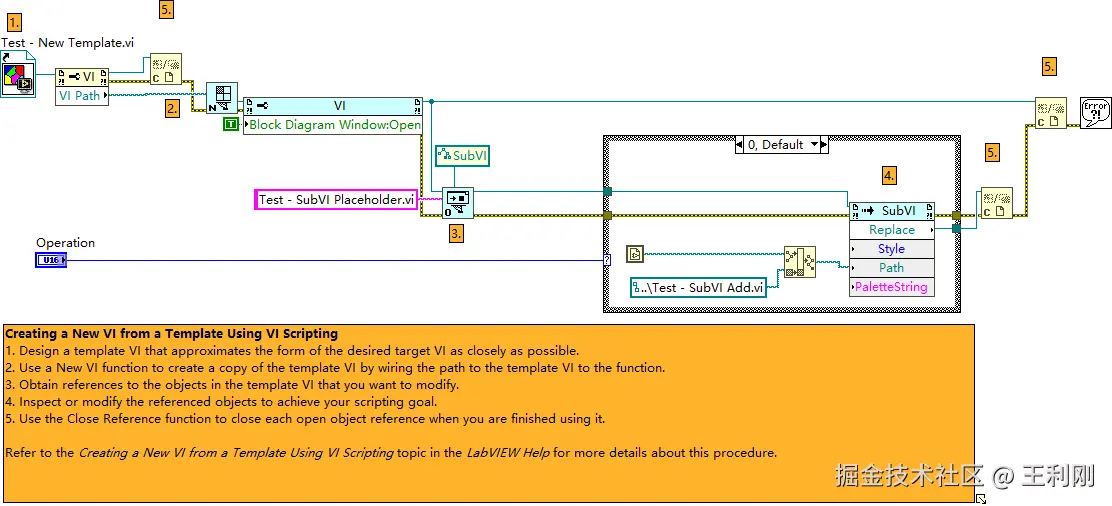 - 占位符明确性:模板中的待替换子VI需具有唯一标识(如特殊名称