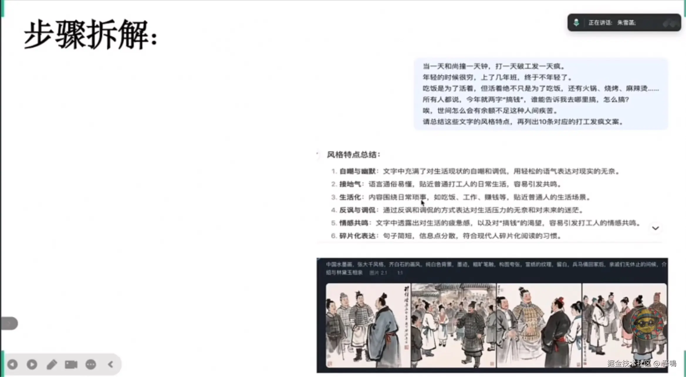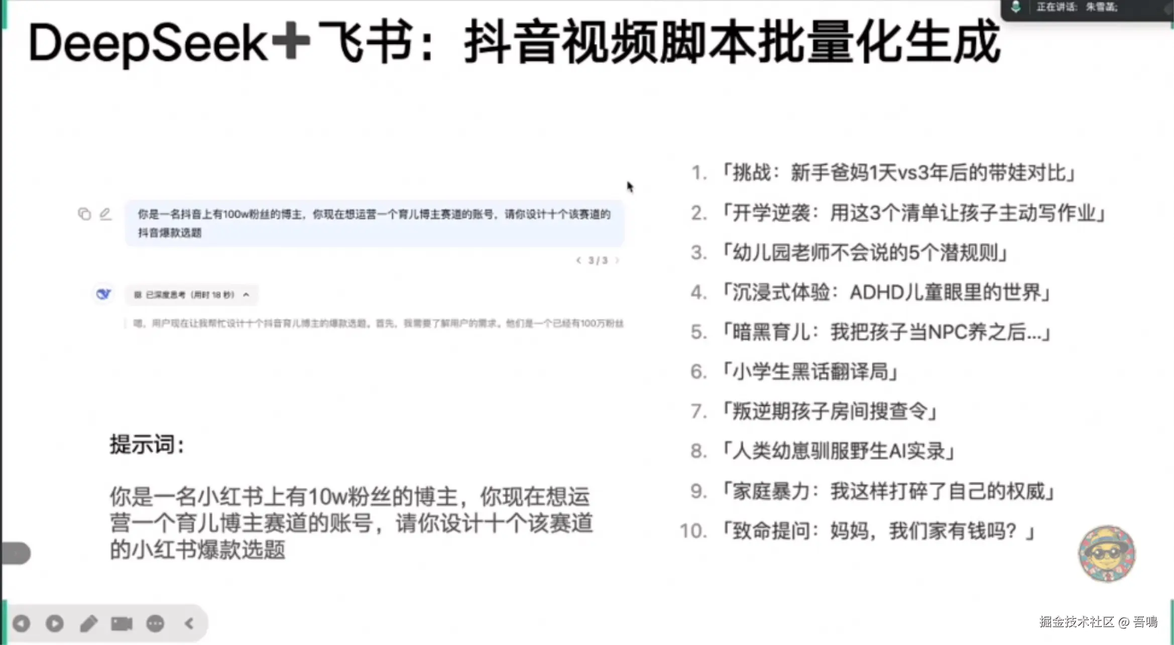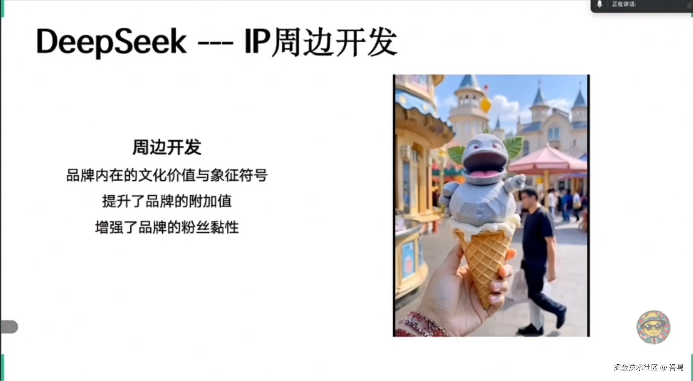 展示DeepSeek在虚拟人领域的实践,如虚拟主播“小雪”和数字人平台“元娲”,说明其通过多模态交互与智能决策提升企业效率。同时涉及AI驱动的3D模型生成和视频工作流引擎(如分镜一键成片)。 - 品牌IP与周边开发