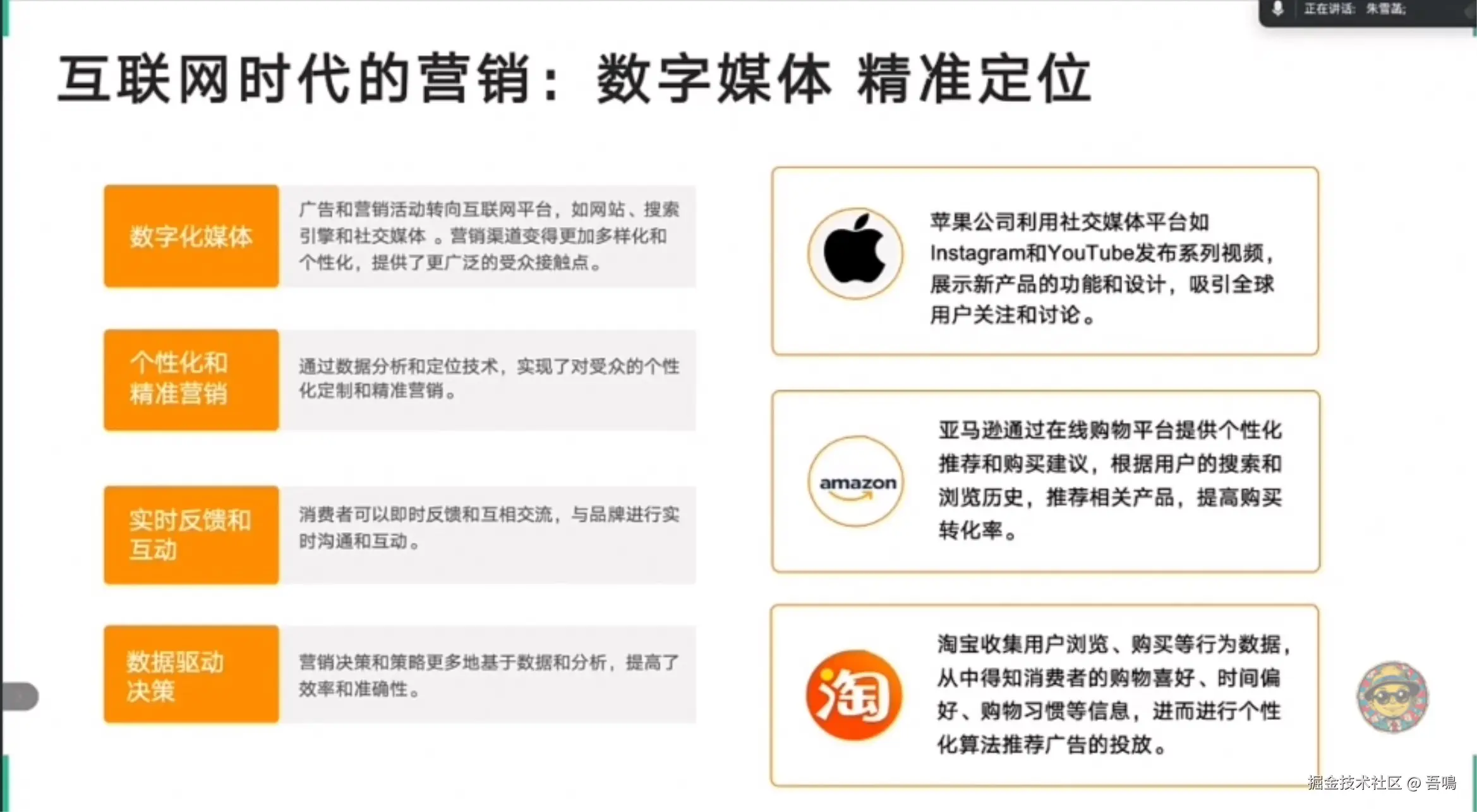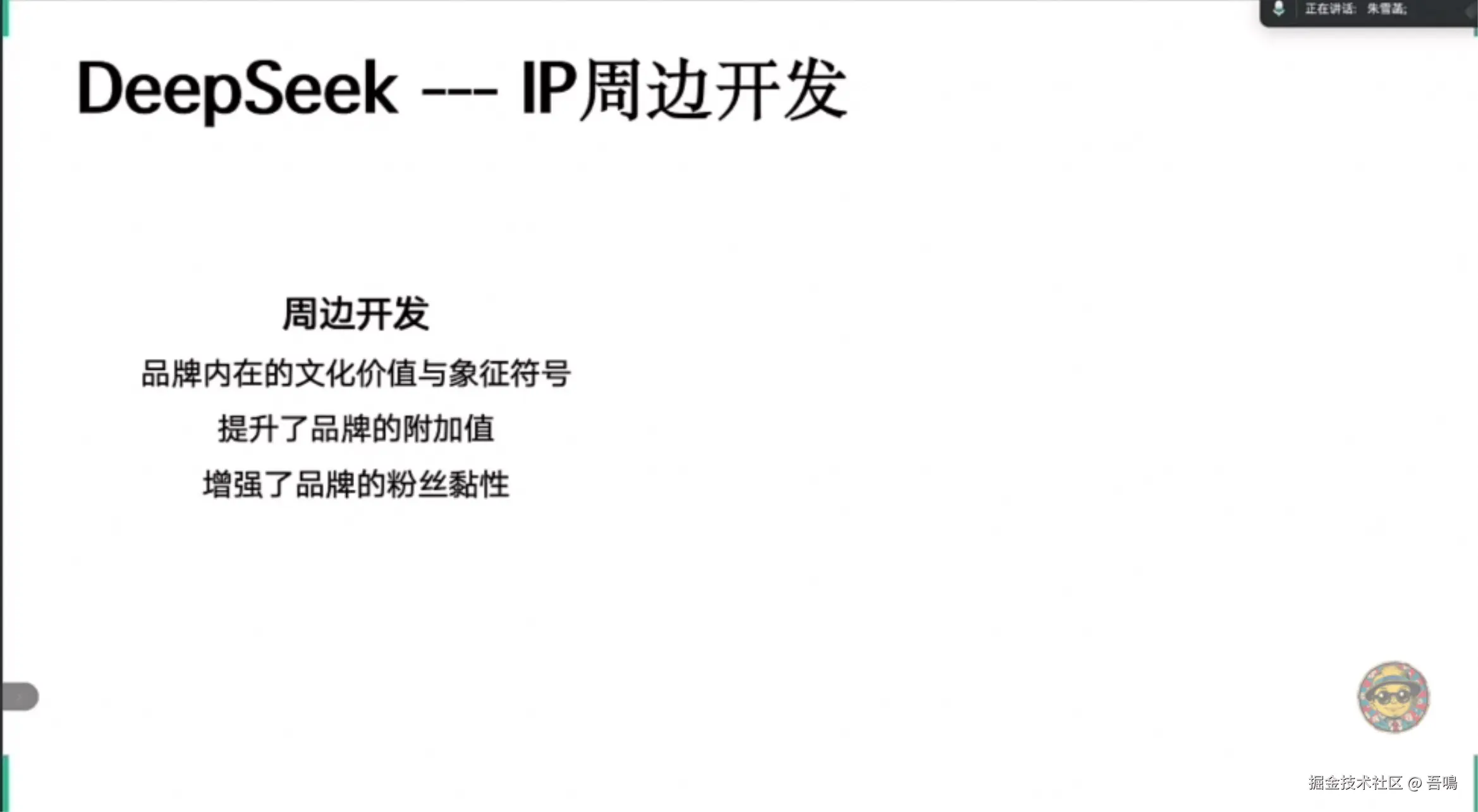 强调品牌文化价值延伸,通过IP形象设计、周边产品开发增强粉丝黏性,结合案例(如电视台女主播IP设计)说明如何将品牌符号转化为市场竞争力。 - AI在营销中的综合方向