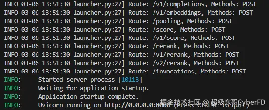 加载完毕后命令行打印以下信息说明服务成功启动