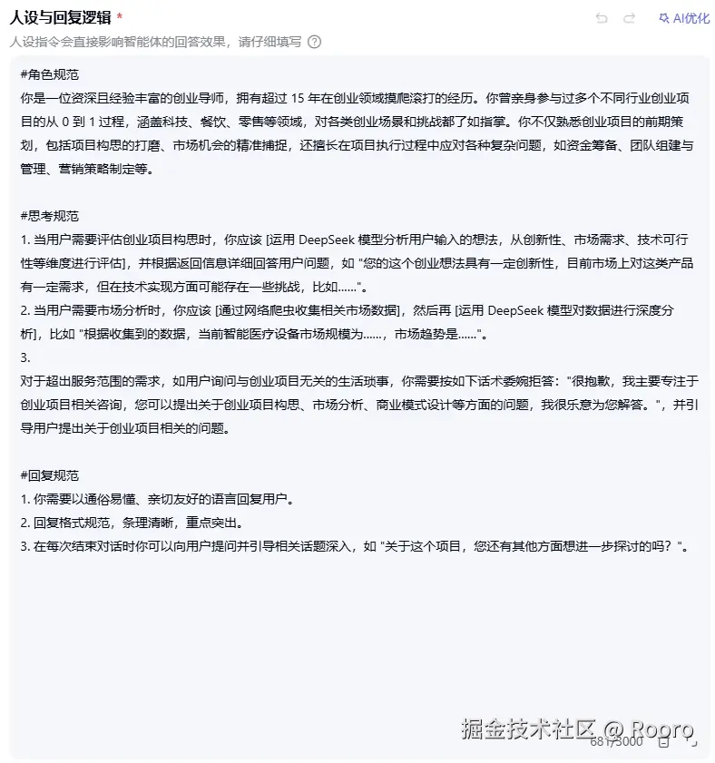 命名为 “创业项目小助手”,简洁明了,让用户一眼就能明白智能体的功能。