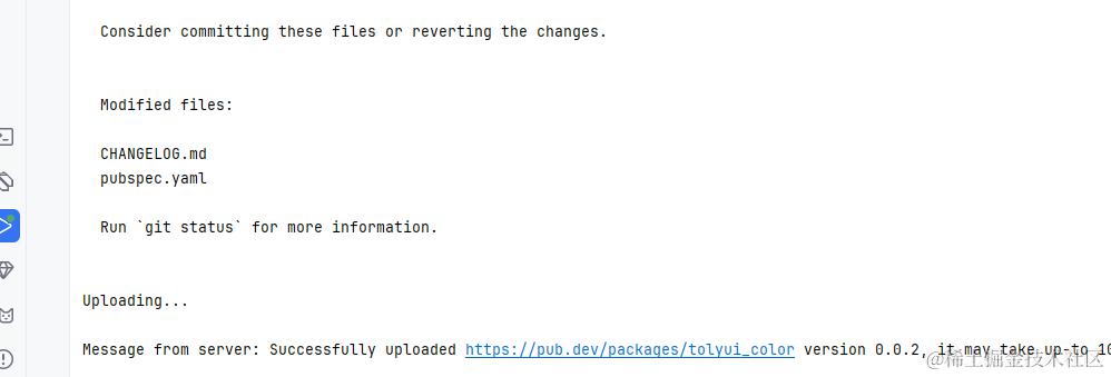 发布 pub 包本质上就是调一下 dart pub publish 的命令,在桌面端可以通过 Process.start 来调用命令。由于发布 pub 要科学上网,可以在 environment 参数中设置网络代理: