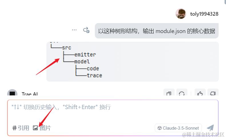 Trae 还有一点非常惊艳,它可以识别图片。比如我给它一个截图,问: