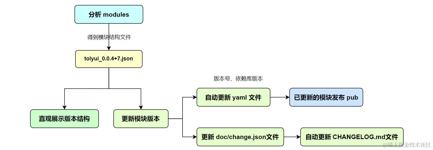 用 dart 解析 modlues 下的模块,自动生成该文件。注意模块间的子模块校验方式是: 依赖中含 tolyui_ 的模块。