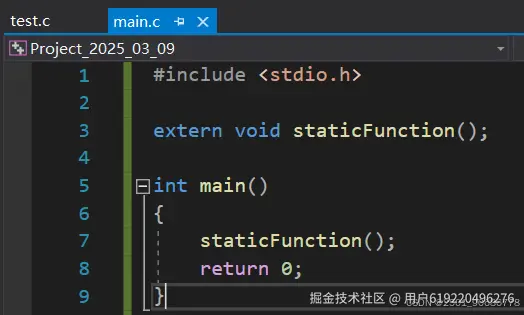 我们看下面这两段来自不同源文件的两段代码其中一个文件中定义了static修饰的函数: