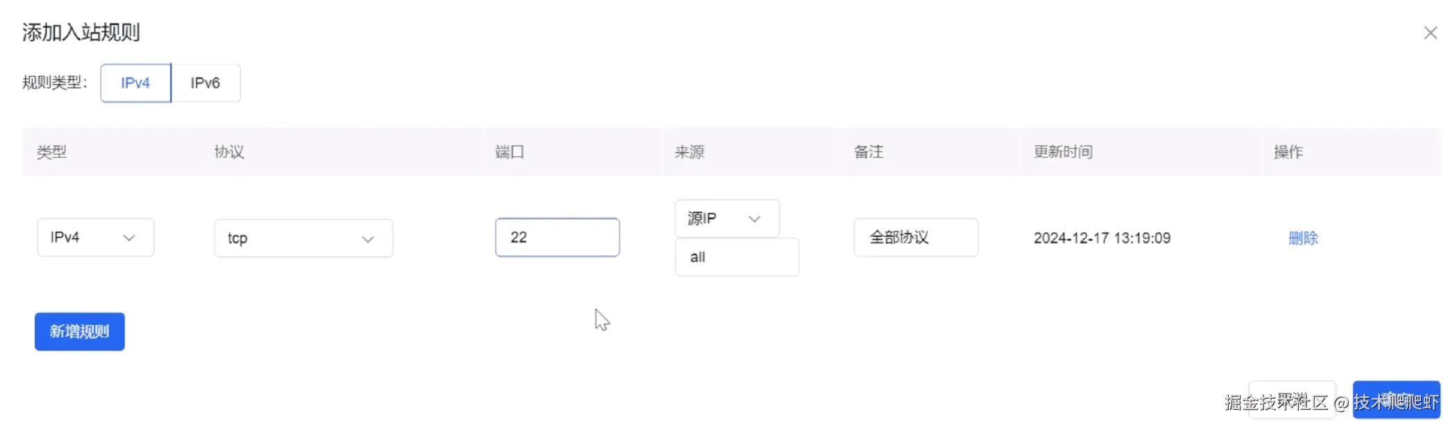 来源的话就是所有。15条Cloudflare的白名单规则,还有一条22端口的SSH规则,最后我们保存一下这个规则。