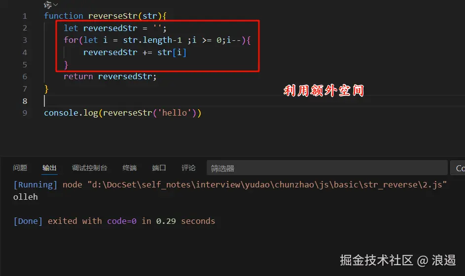 // 第五次迭代: pre = 'lleh', sub = 'o' => 'olleh'