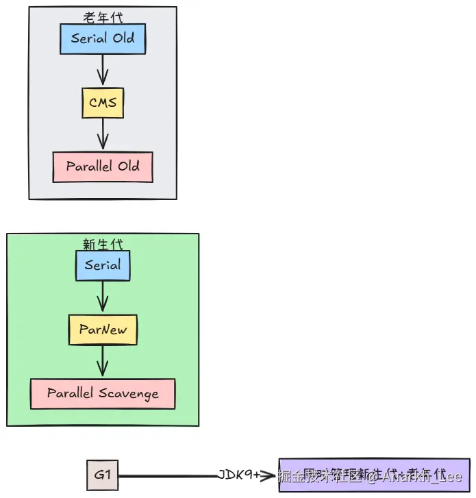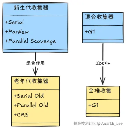 <font style="background-color:rgb(252, 252, 252);">-XX:+UseSerialGC</font>(自动组合Serial+Serial Old) - G1、ZGC等新一代收集器无需组合