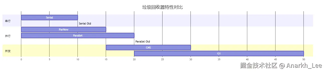 | 特性\收集器 | Serial | ParNew | Parallel | CMS | G1 |