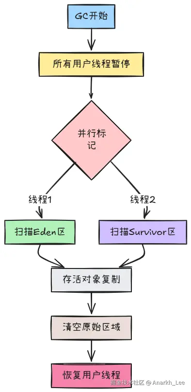 - 串行:单线程执行,全程STW