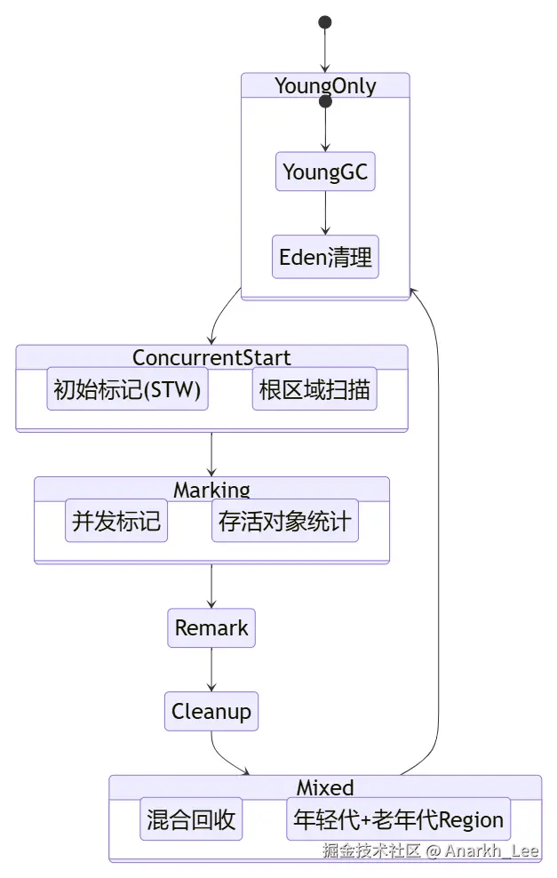 | G1混合回收效率低 | Region存活数据过多 | 调整IHOP阈值/减少Humongous分配 |