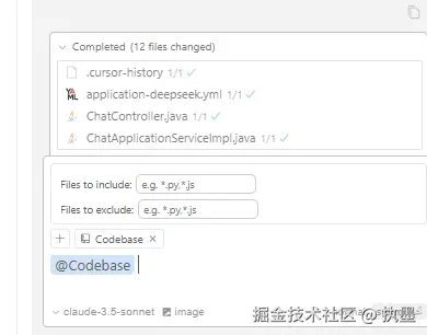 - Codebase 表示当前工作区即当前项目代码,可以通过正则选择需要扫描的文件