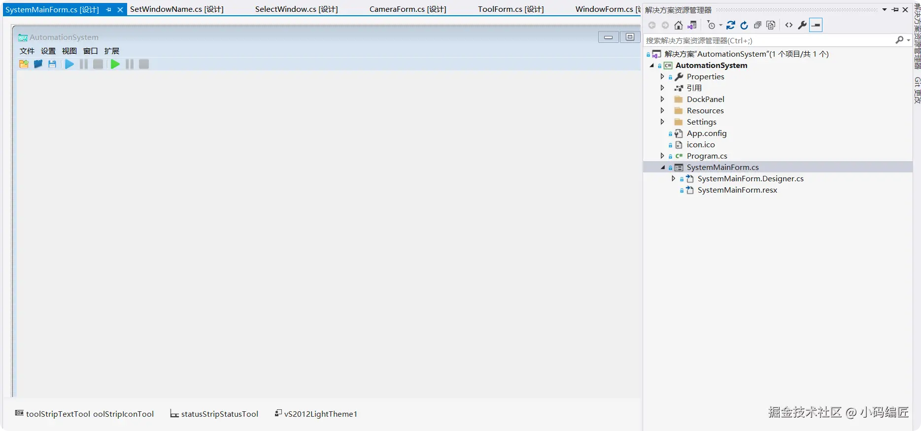 软件运行的主要窗体项目,是整个系统的核心界面,用于控制和监控自动化流程。