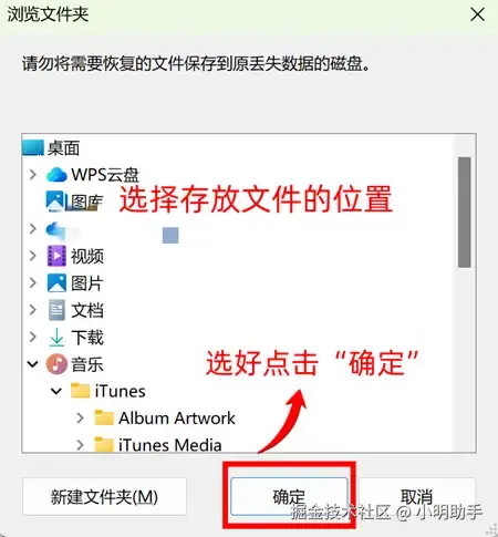 步骤3:点击“导出”,在新的窗口上点击恢复文件的新存放位置。