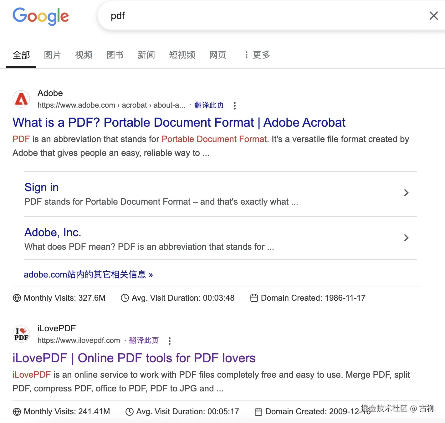 比如围绕 pdf 有很多需求,直接搜索 pdf,排名第二的 iLovePDF 就是对应的 pdf 相关的工具站。