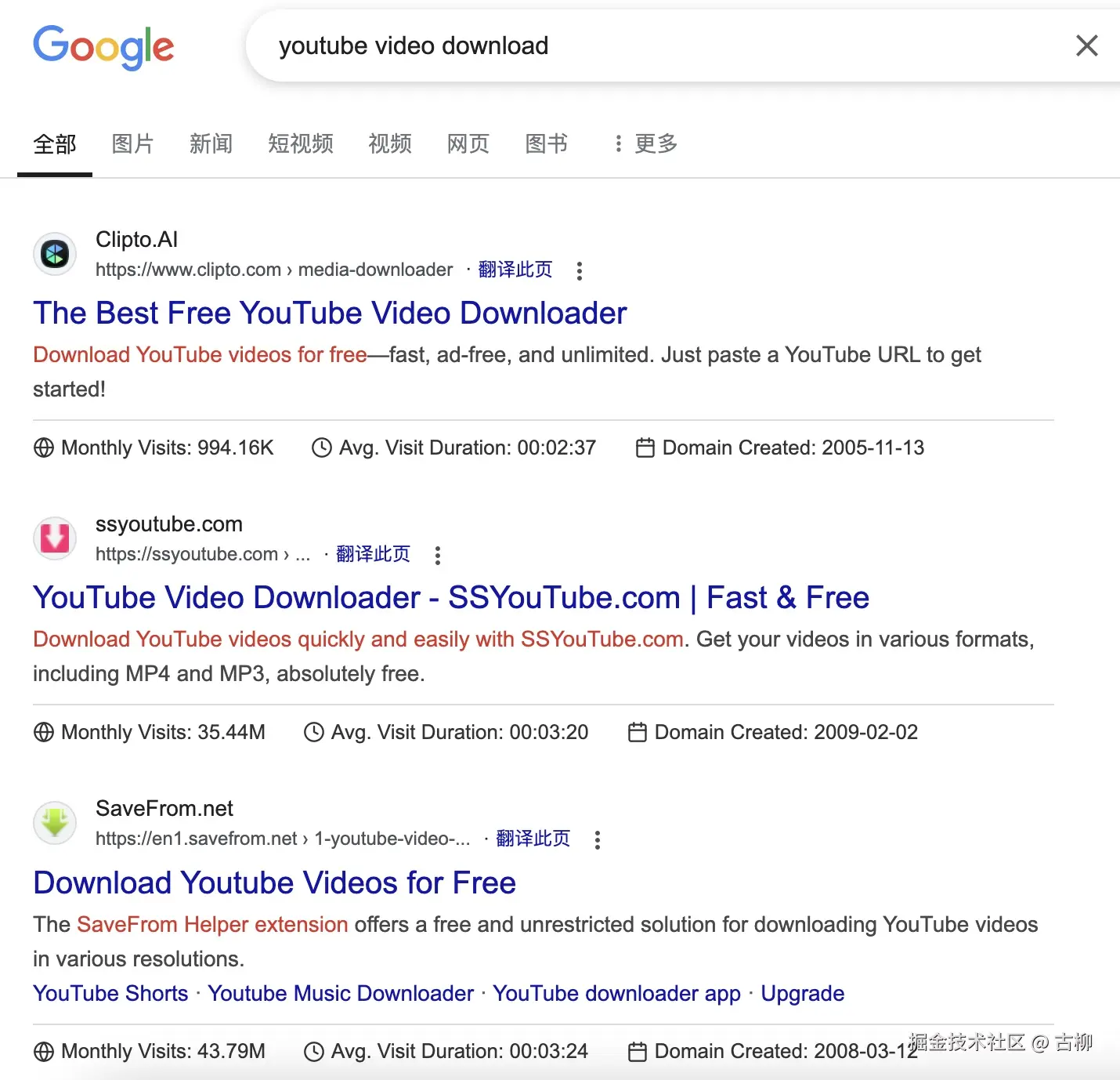 比如大家想下载油管视频时搜索 youtube video download 就会跳出很多能满足需求的网站,只需要丢进去视频链接就能下载对应视频文件。
