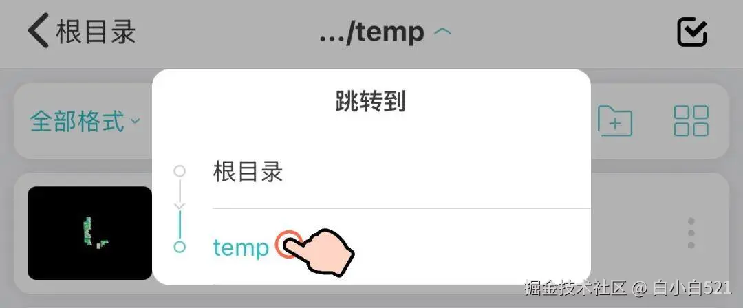 苹果ios系统的设备找回路径:点击“文件→点击上方根目录→temp。