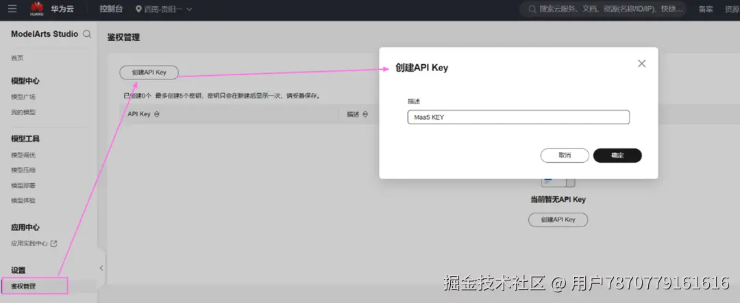 在MaaS左侧导航栏中,选择“鉴权管理”。