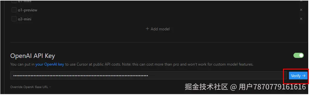 (1) 点击Cursor界面右上角设置按钮进入设置界面,进入Models页签,点击 Add Model