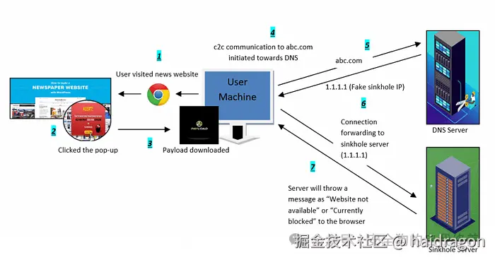 DNS Sinkhole 流的说明: