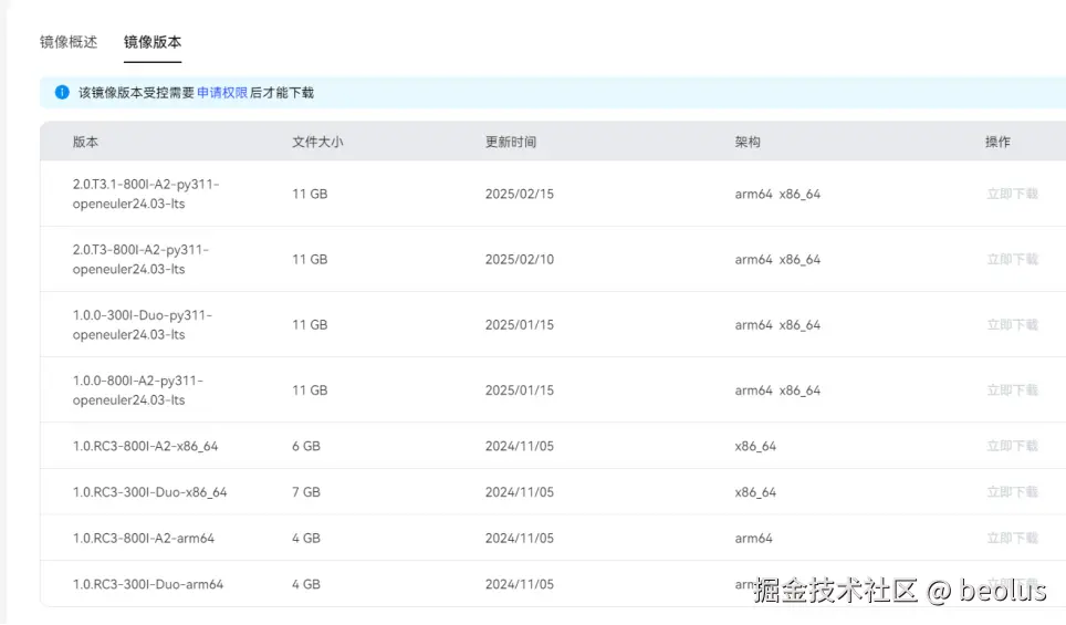 2)申请权限后,下载对应的镜像版本