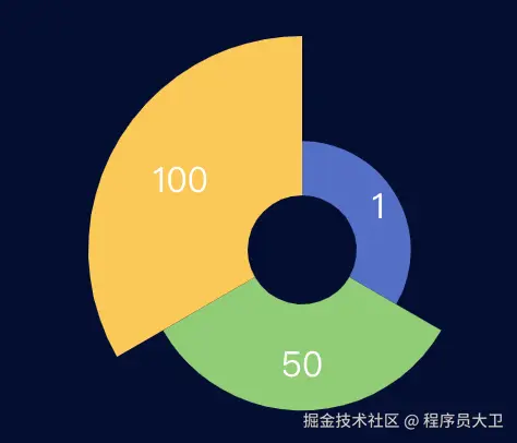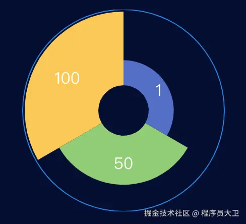 我们可以通过 叠加多个圆 来调整 value 的值,使得小数据项在视觉上更加明显,同时仍然保留真实值的展示。例如最终的效果如下: