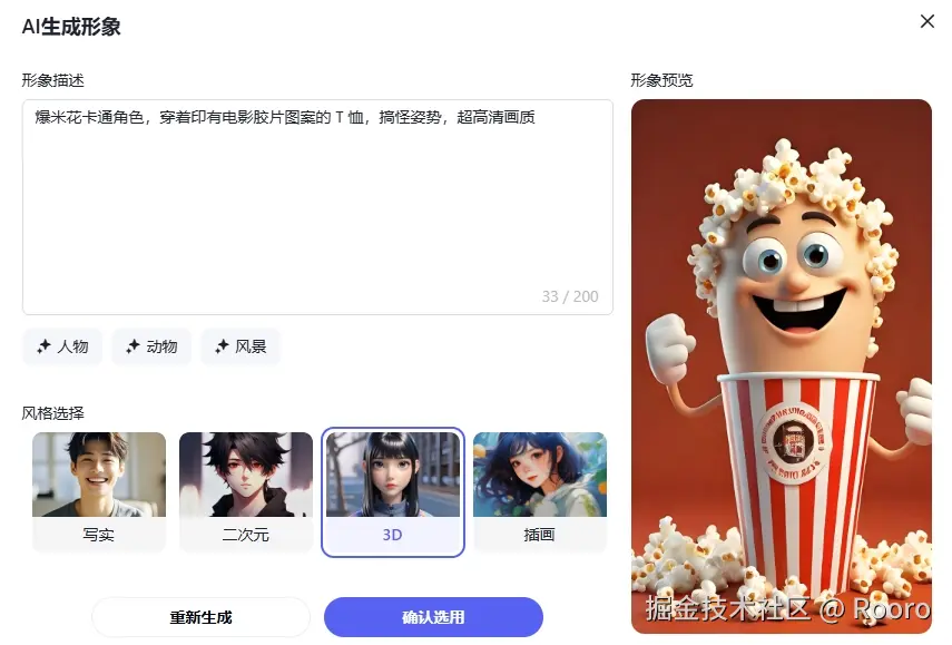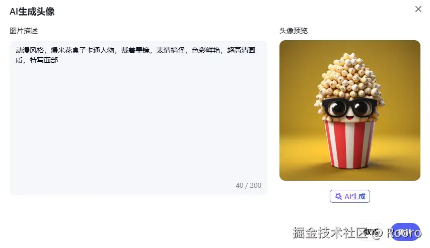 头像生成提示词为 “动漫风格,戴着眼镜的爆米花卡通形象,表情搞怪,色彩鲜艳,超高清画质,特写面部”