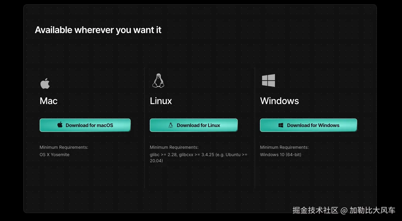Windsurf的安装比较简单,打开官网,根据个人需求选择下载安装相应版本即可。