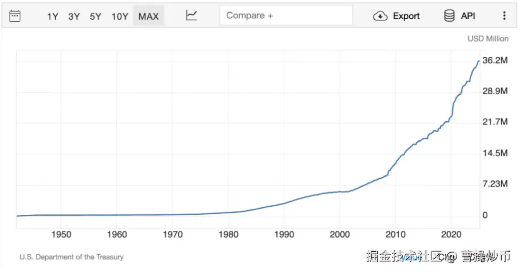 理论上,建立战略比特币储备也可作为对冲通胀的一项工具。自1960年以来,美国M2货币供应量不断攀升,而联邦政府债务已突破36万亿美元,债务占GDP比例逐年上升,加之高利率背景下巨额的利息支出,都给财政带来了沉重负担。相比之下,比特币因其总量固定,被广泛视为抗通胀的“数字黄金”。因此,建立战略比特币储备不仅是巩固美元霸权的战略举措,也是缓解通胀压力、解决国债问题的潜在方案。