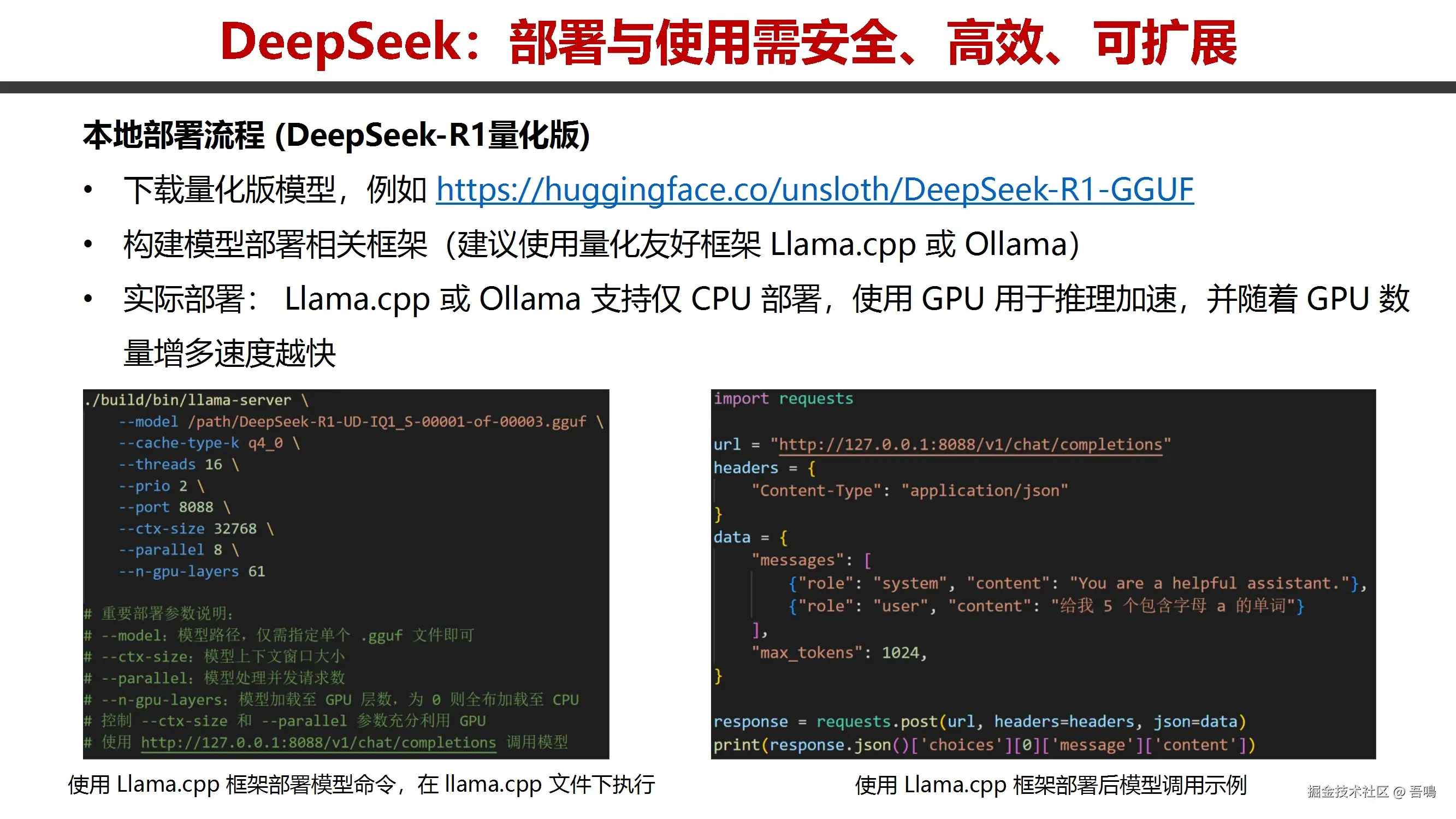吾鳴之前给大家分享过由天津大学出品的报告《DeepSeek原理与效应》,今天吾鳴再给大家分享一份由天津大学出品的报告——《深度解读DeepSeek:部署、使用、安全》。