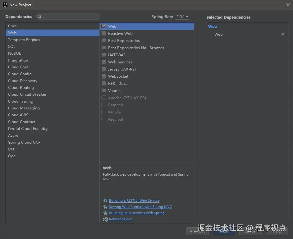 上面是引自官网的一段话,大概是说: Spring Boot 是所有基于 Spring 开发的项目的起点。Spring Boot 的设计是为了让你尽可能快的跑起来 Spring 应用程序并且尽可能减少你的配置文件。