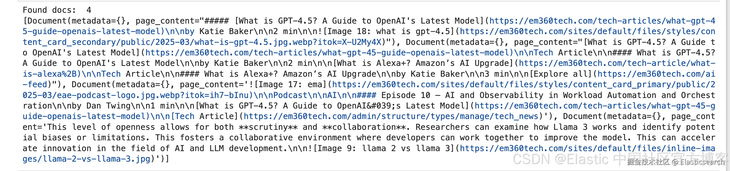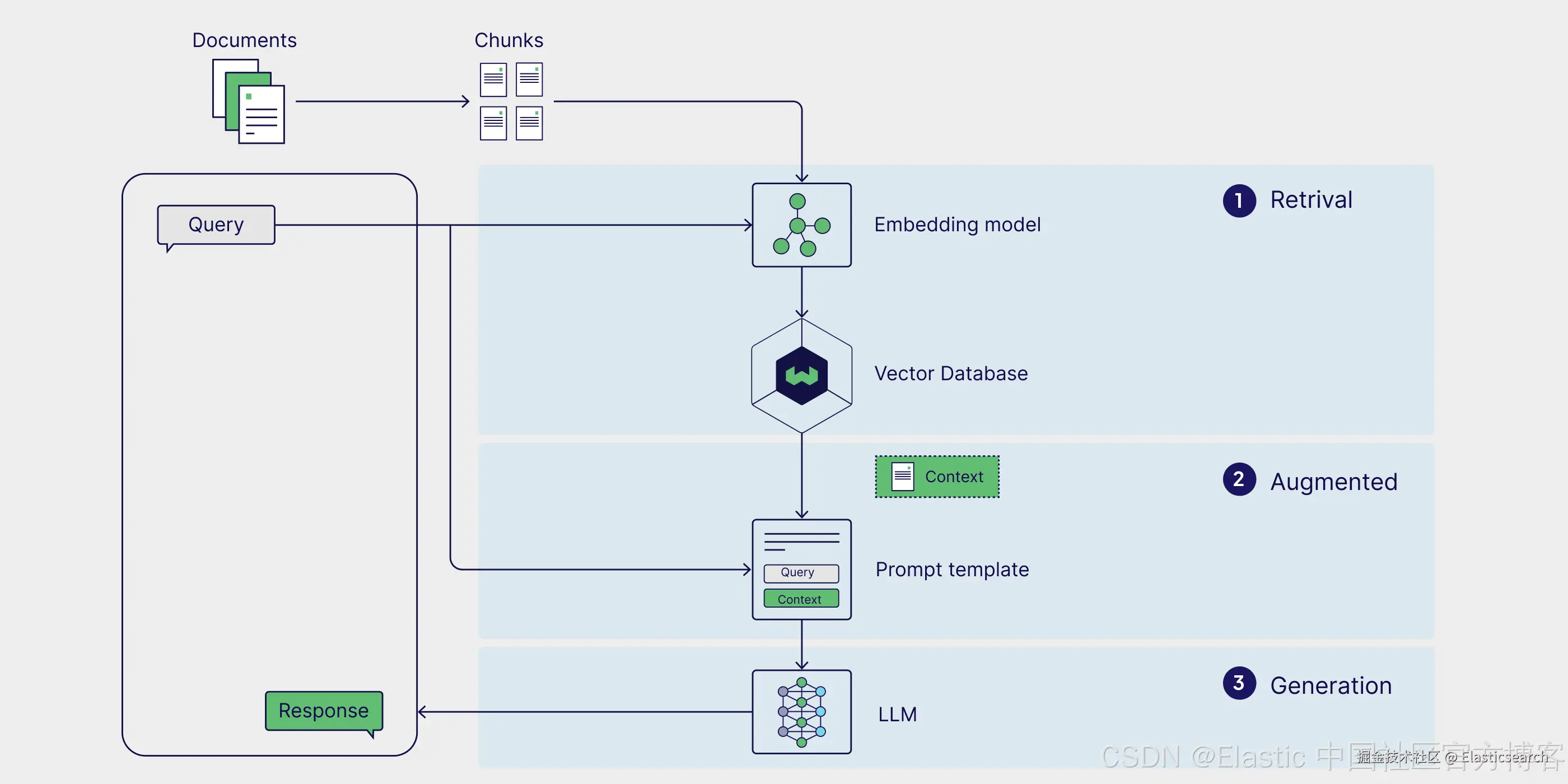 - 向量搜索引擎:从向量数据库(如 Elasticsearch、FAISS)检索相关文档