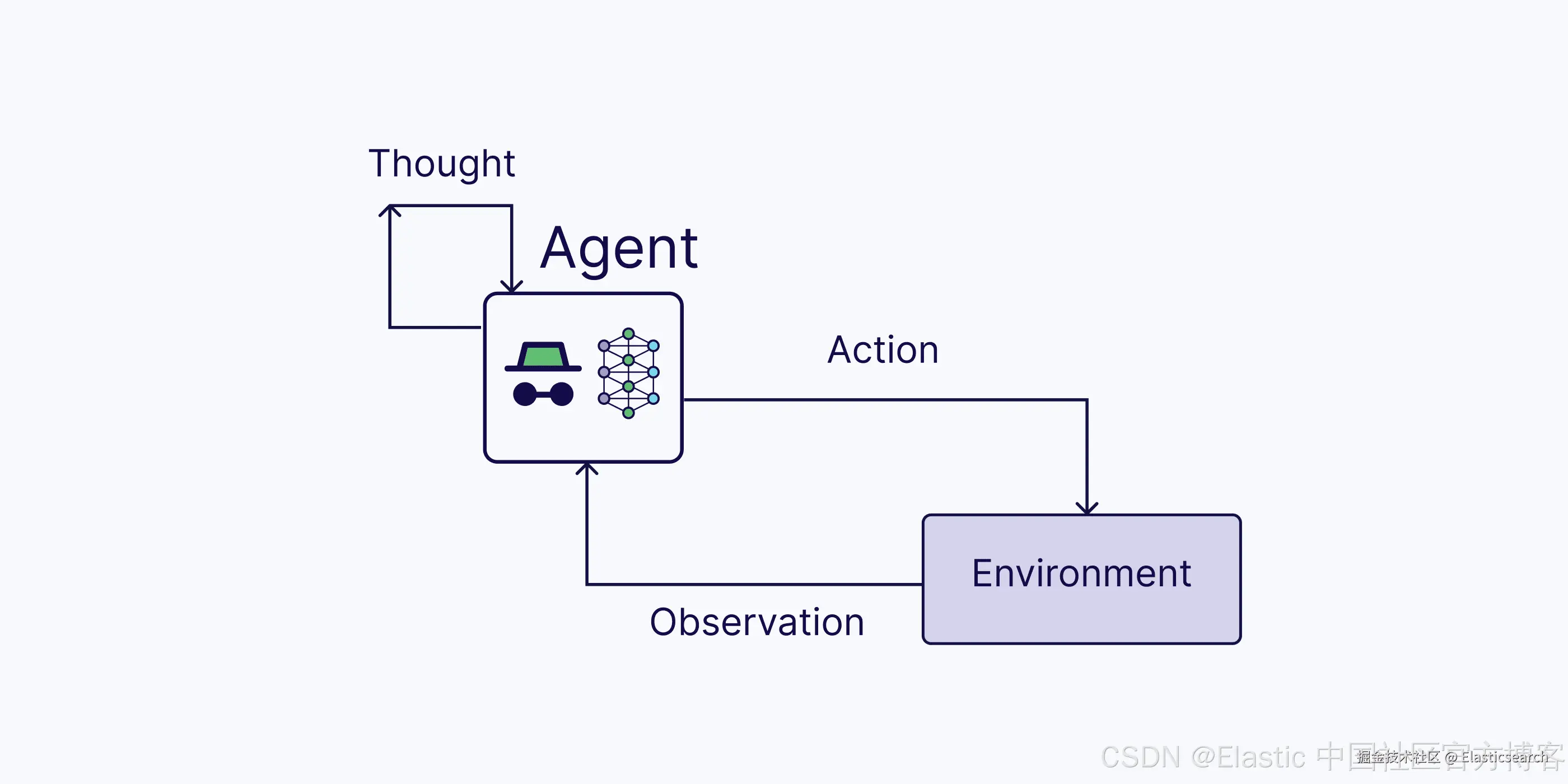 - 操作:代理决定操作并执行该操作(例如,使用工具)