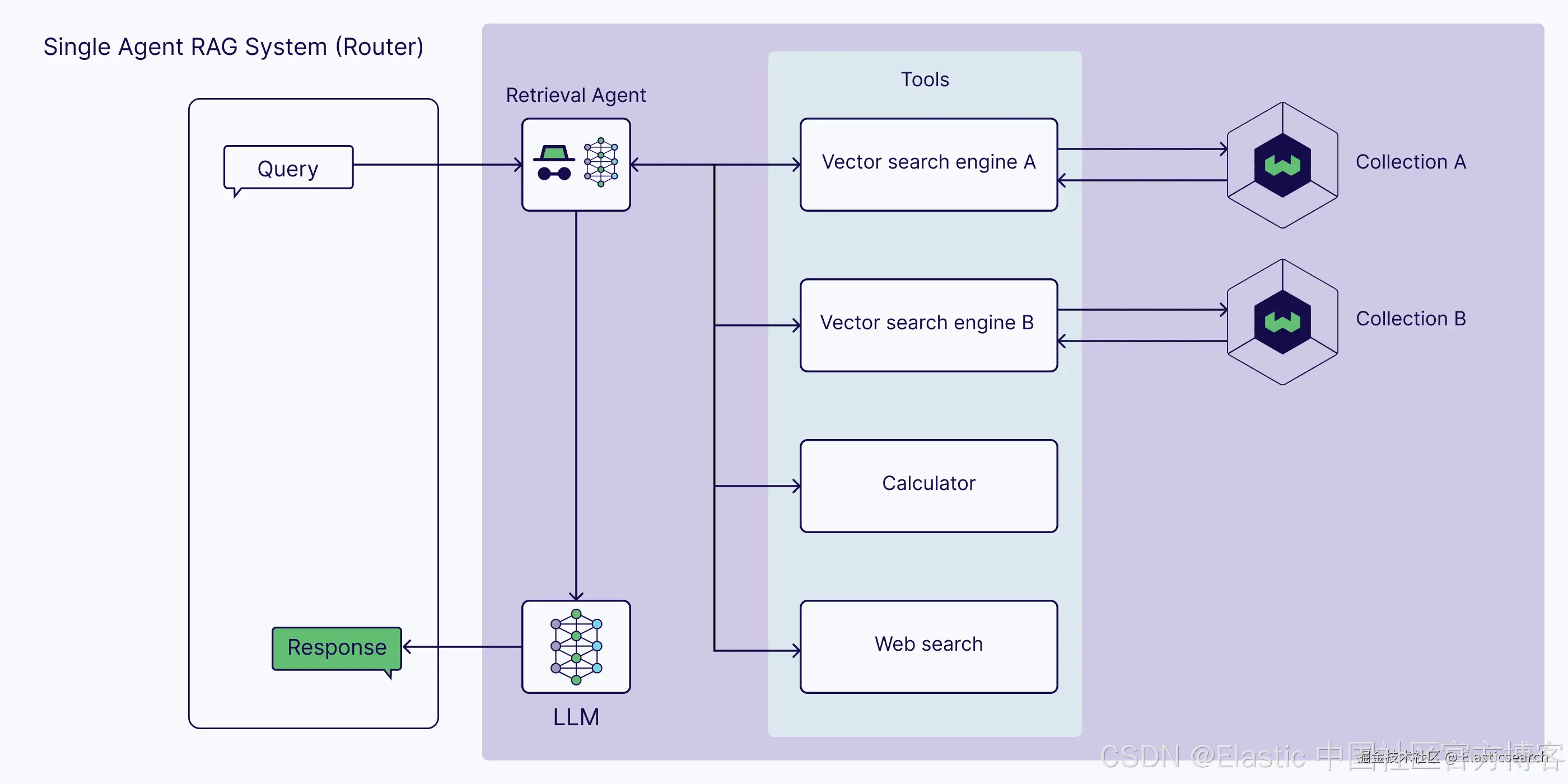 - 简单的 RAG 管道仅考虑一个外部知识源。但是,某些解决方案可能需要两个外部知识源,而某些解决方案可能需要外部工具和 API,例如网络搜索。
