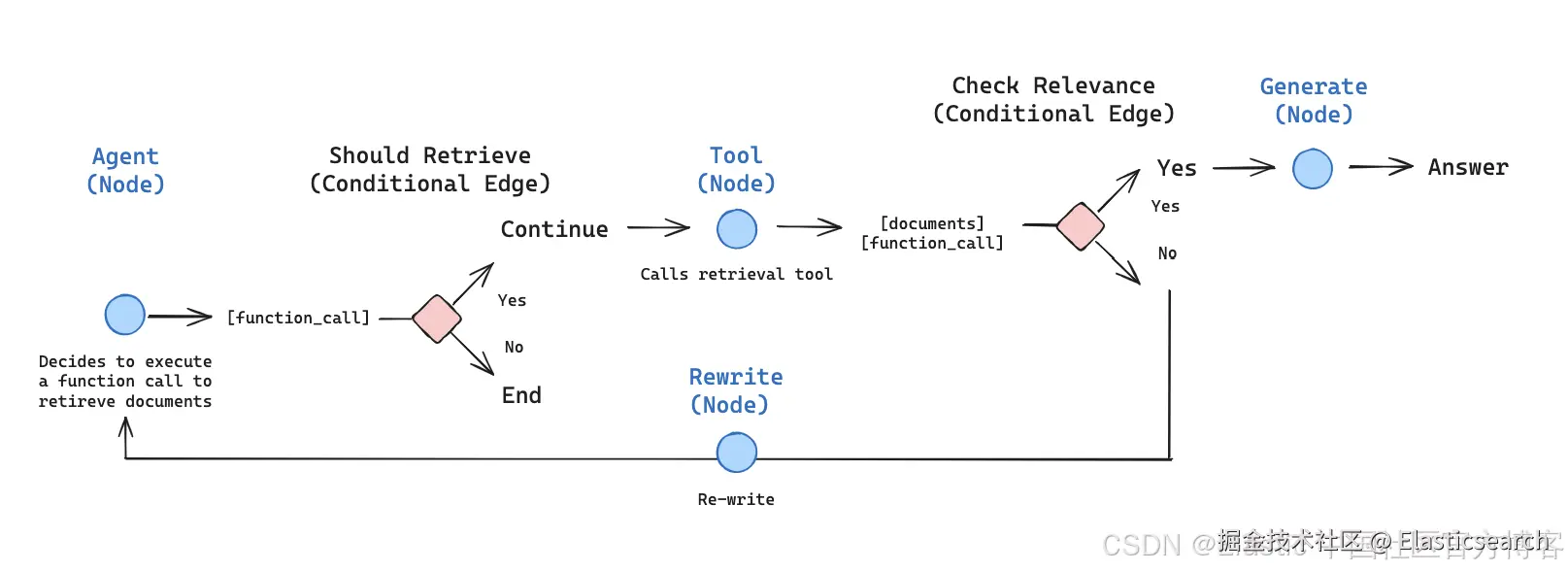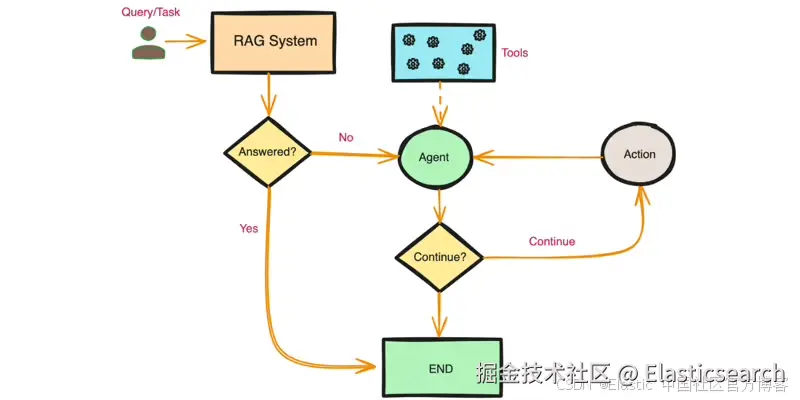 - 如果不行,就调用 AI 代理,使用工具(例如在线搜索)来查找额外的信息,然后再生成答案。
