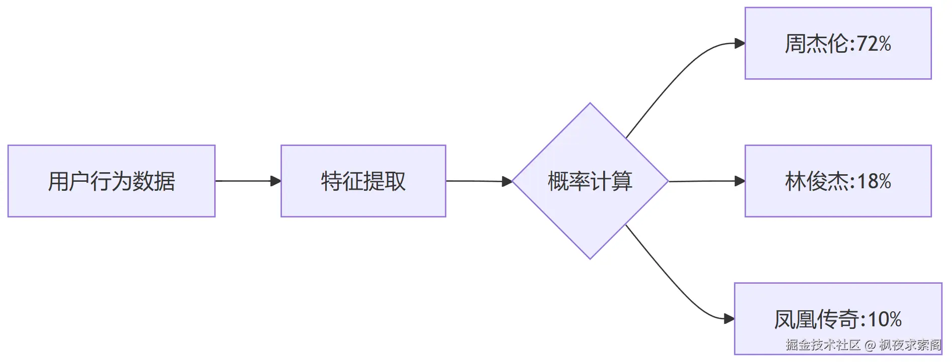 最终概率 = (这首歌符合你口味的可能性 × 你平时喜欢新歌的概率) / (这首歌在所有歌中的流行程度)