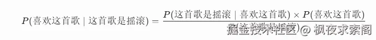 P(这首歌是摇滚 | 喜欢这首歌) × P(喜欢这首歌)