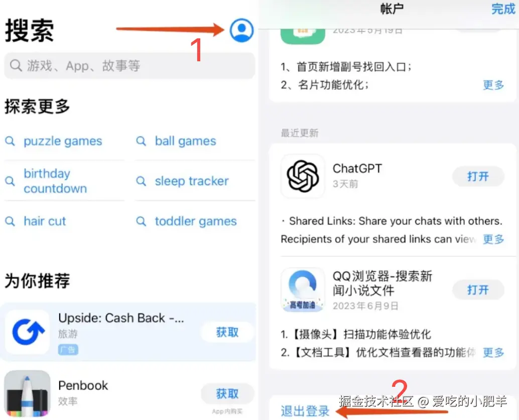 再次点击 App Store 右上角的头像图标。