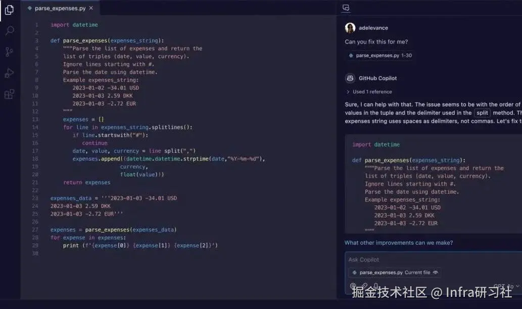 Github Coplilot 代码副驾驶助手,这个工具我很早就在使用,用于局部代码块提示,还是很有用的,而且响应很快,它的特点是以人为主 Copilot 为辅,加快我们写代码,对于本身就会写代码的开发人员很有用。